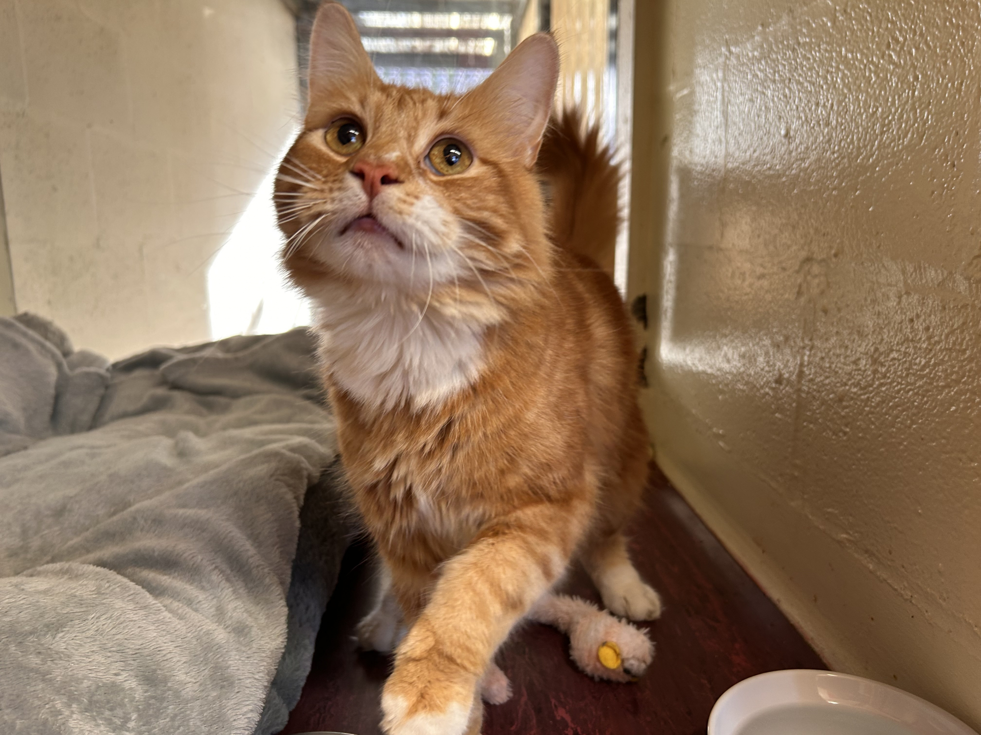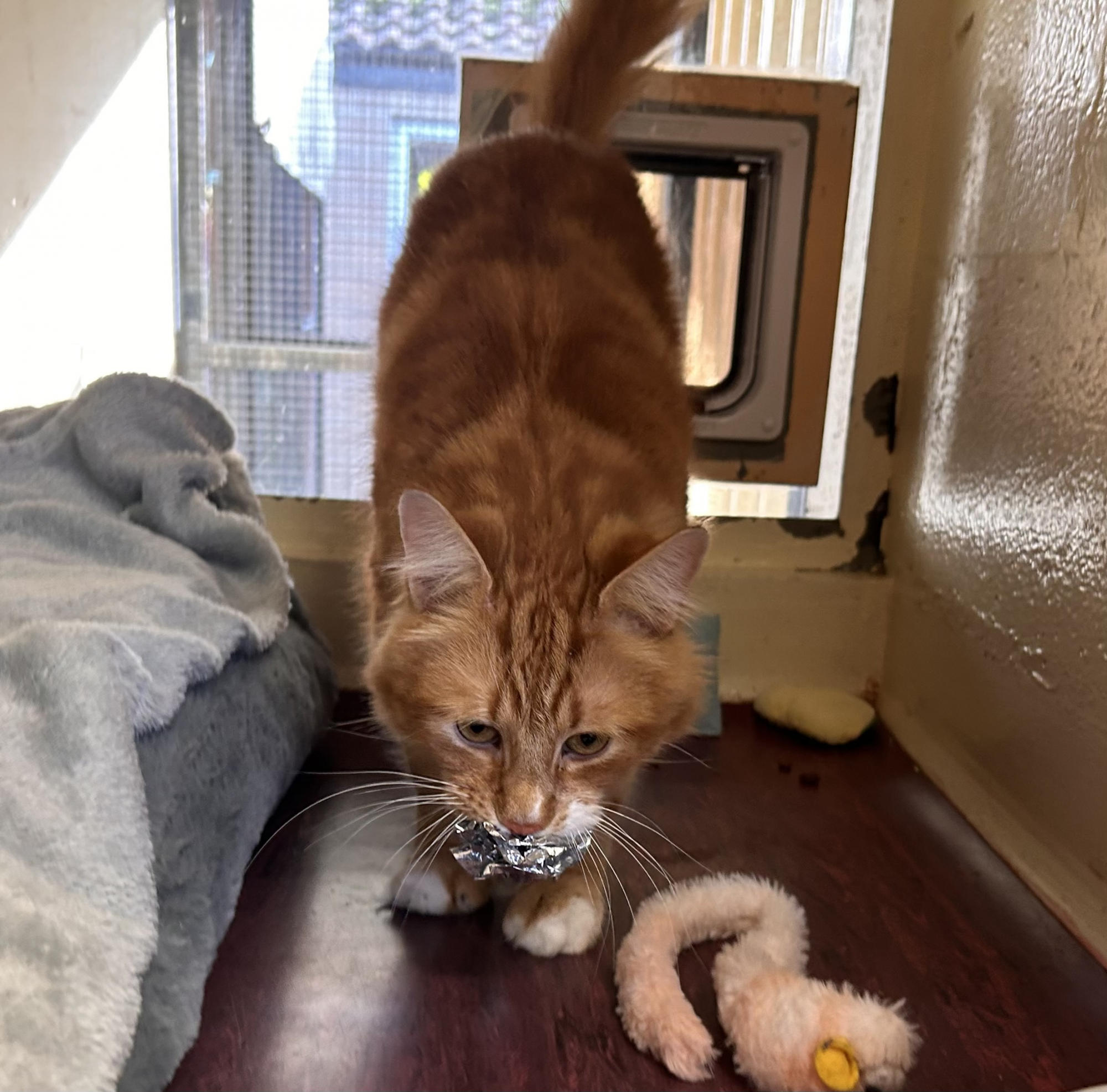 Finnigan is a lovely lad who came to the centre as an unclaimed stray. He is such a friendly and confident boy who will make the most wonderful family pet. Finnigan loves playing with his toys and will even play fetch with you, he loves attention and will always come running when he hears you approaching his cubicle.