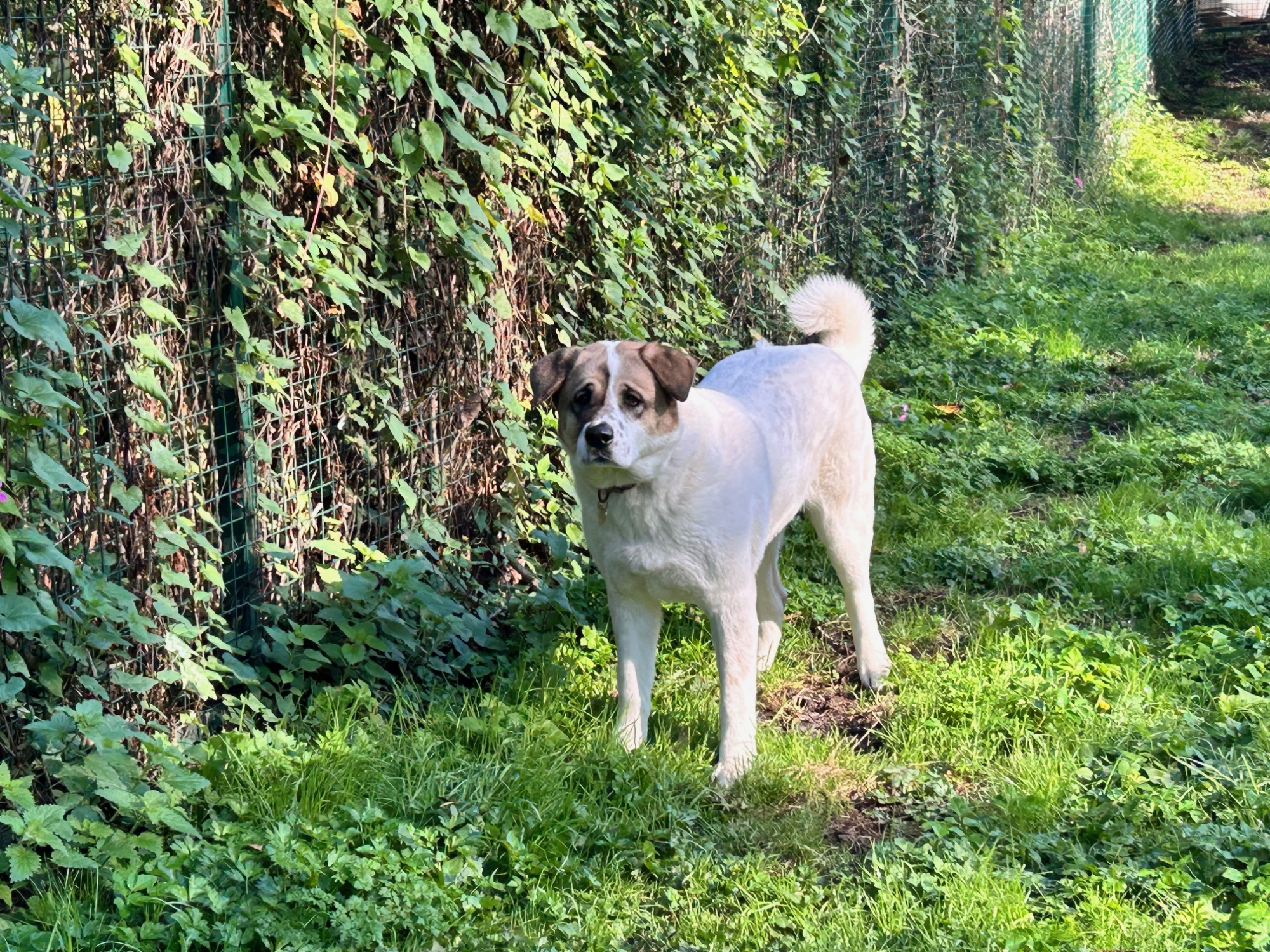 Ice is a sweet girl who originally came to the centre with her three puppies. She came to us via the inspectors after her and her puppies needs were not getting met. She was quite underweight on arrival and generally quite run down, since weaning her puppies and getting the correct diet and lots of TLC Ice has flourished and slowly but surely we are seeing her true character coming through.