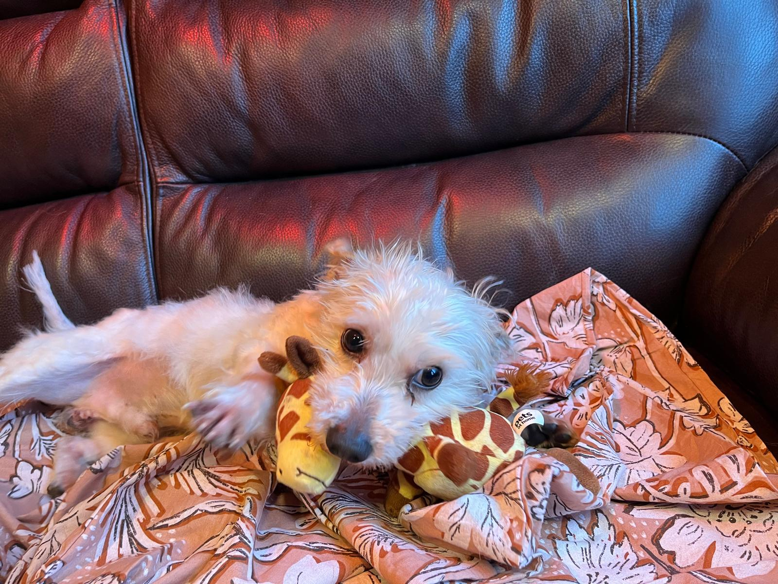 Larry is a really friendly little guy who loves attention and loves to just sit on your lap getting lots of affection. Larry is still getting used to walking on a collar and lead and can sometimes find outside a little overwhelming. His new family will need to bear this in mind and take things slowly with him and help him overcome his insecurities. He will need someone who is at home most of the time while he settles in. Larry really is a very lovely dog who will make the family lucky enough to adopt him a wonderful family pet.