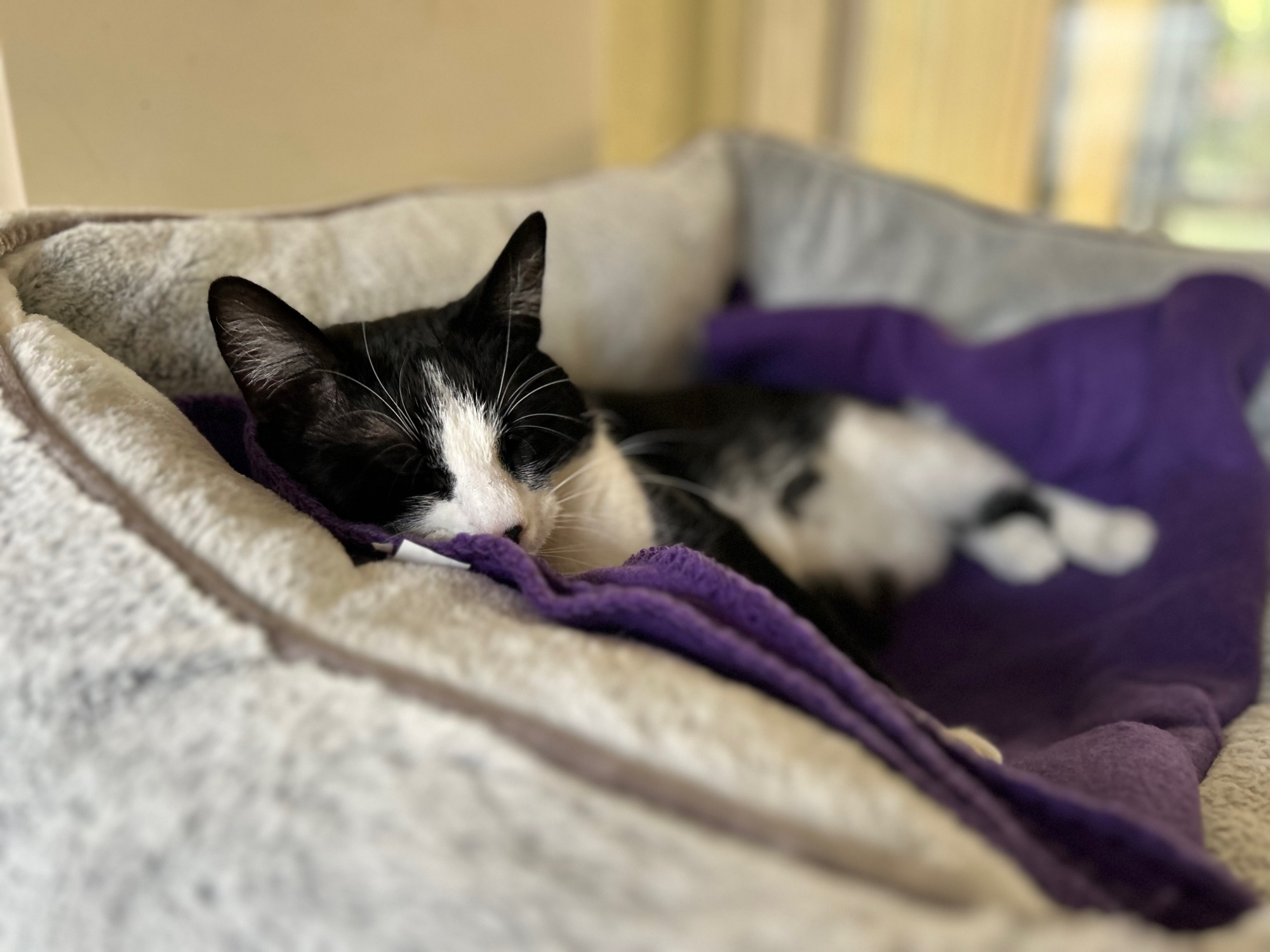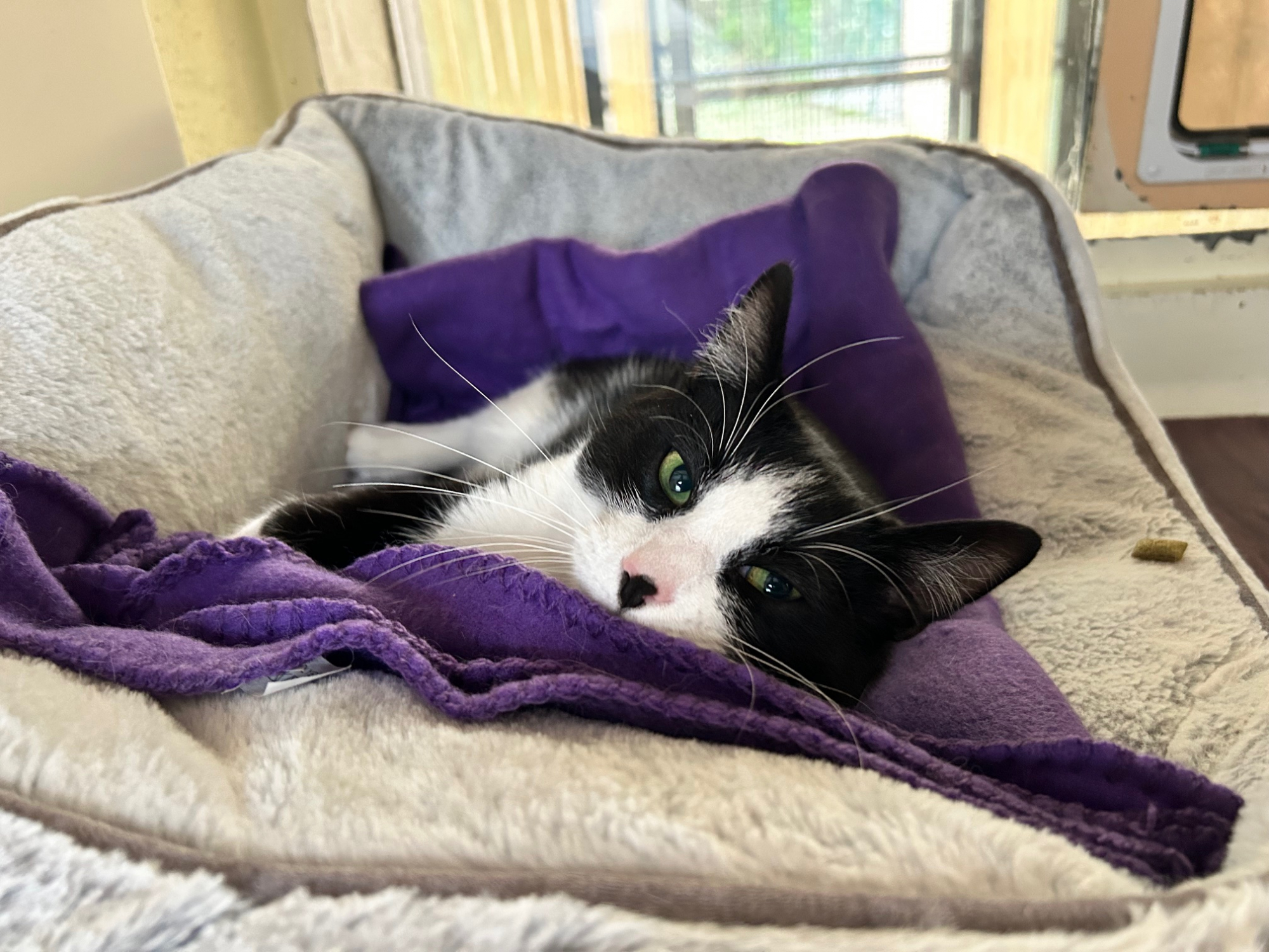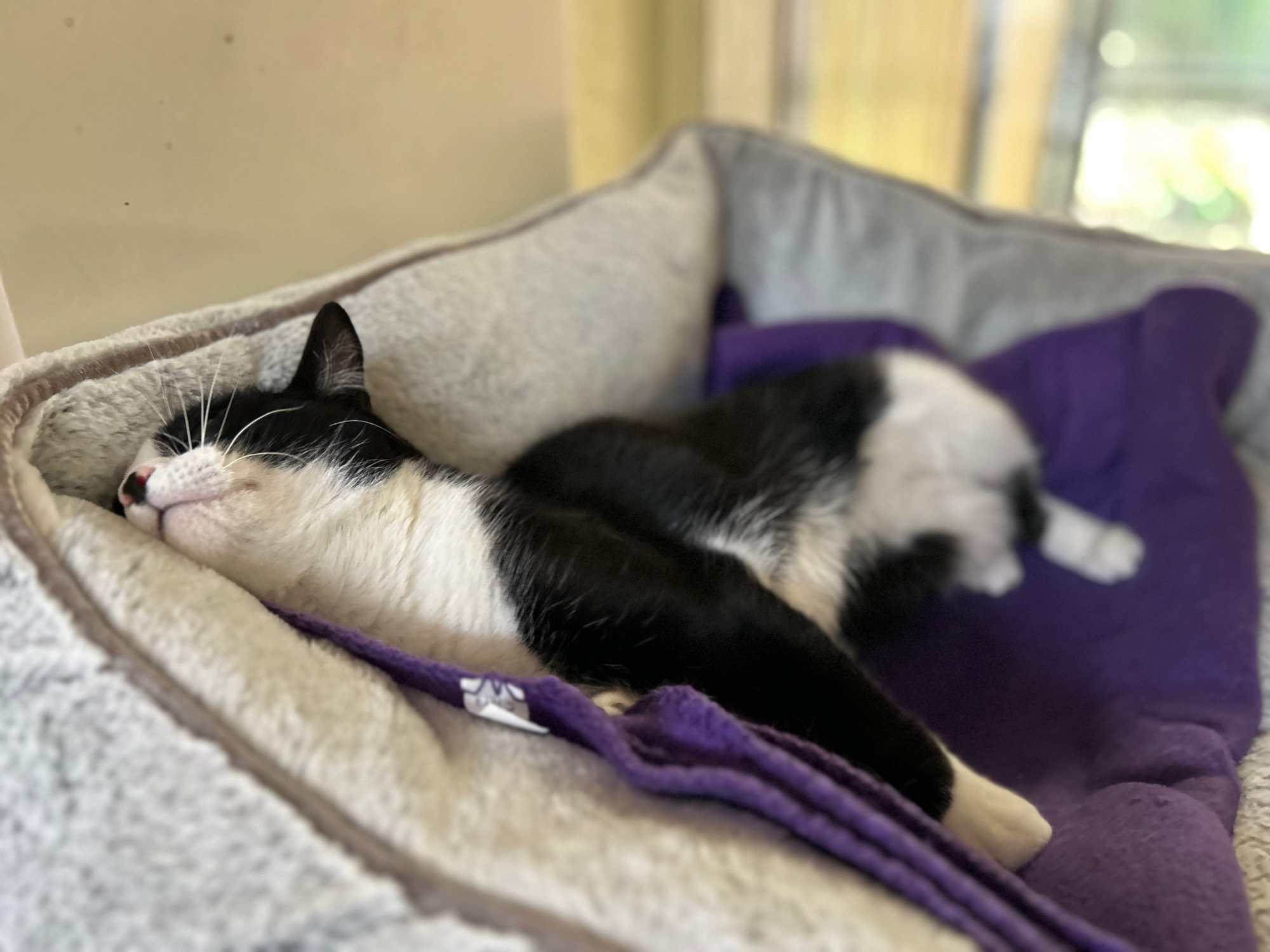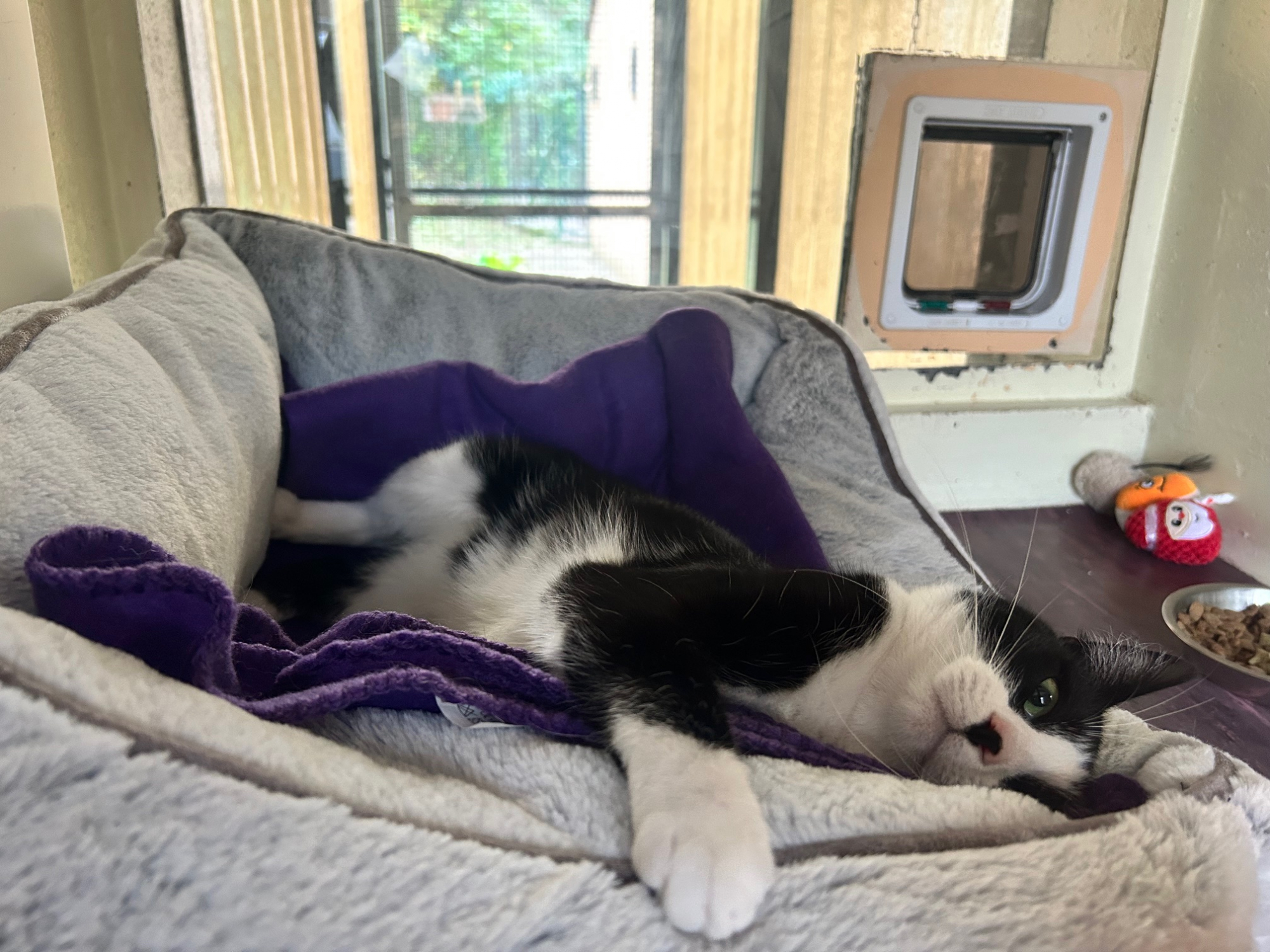 Tiny is still quite nervous around people he does not know so adopters will need to bare this in mind and give him the time he needs to settle. He does enjoy a fuss but can get spooked quite easily, he has come a long way from the cat who first came threw our doors. He now just needs his happy ending with a family who will love him unconditionally and give him the loving home he so very much deserves.